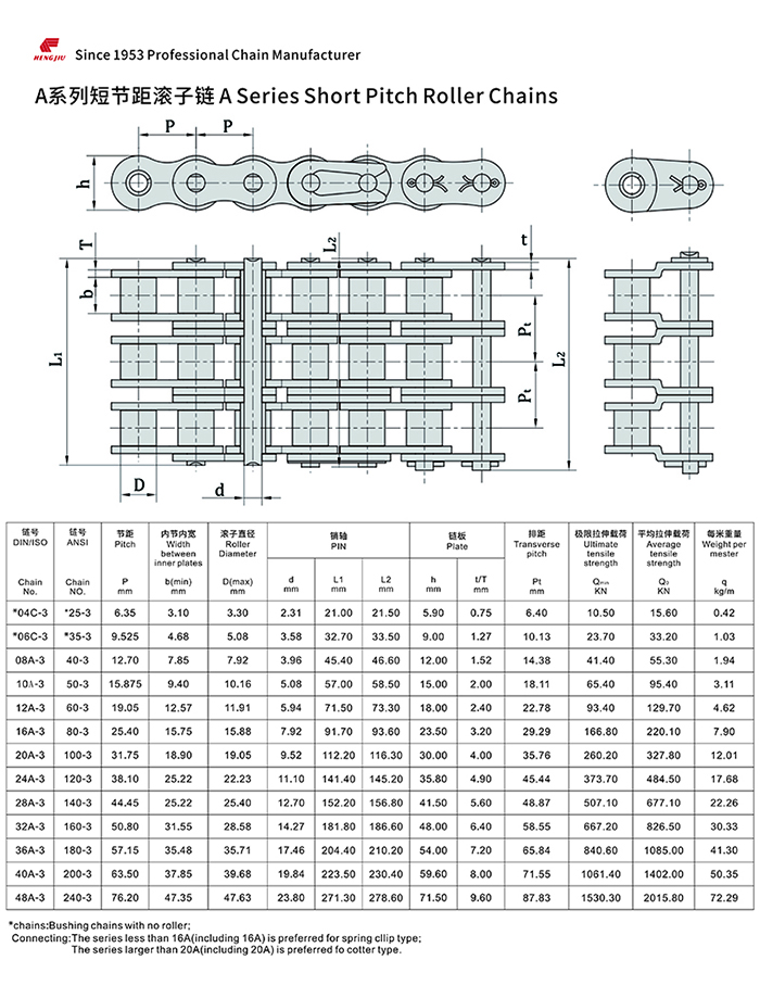 澳门广东会网站集团的短节距滚子链以其高强度和耐疲劳著称,尺寸完全遵循ANSI、ISO和BS标准,可组装成单排、双排和多排,以适用所传动的功率和不同的配置空间。
